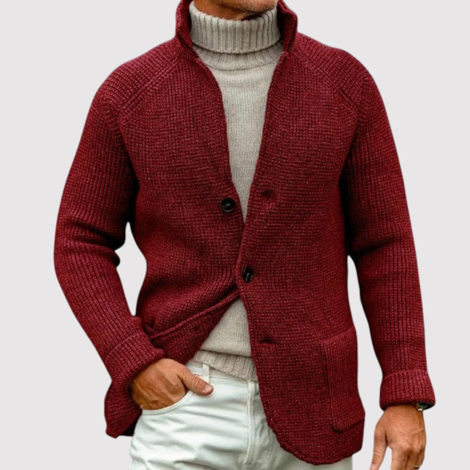 洗練された快適さを身にまとう贅沢なニットカーディガン。落ち着きと自信を漂わせる大人の男性にふさわしい一着です。上質な暖かさとタイムレスなデザインが、あなたの装いに静かな品格を添えます。