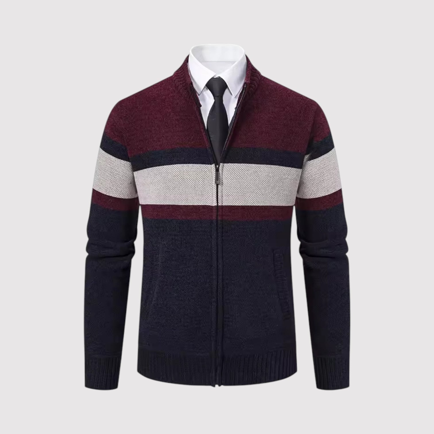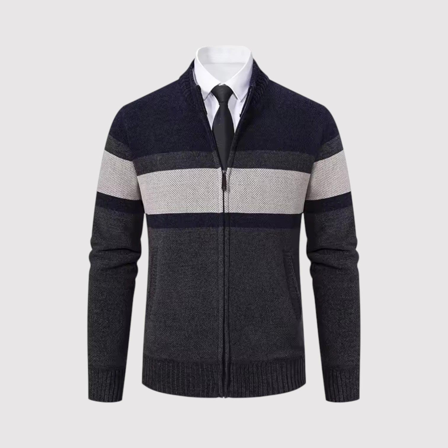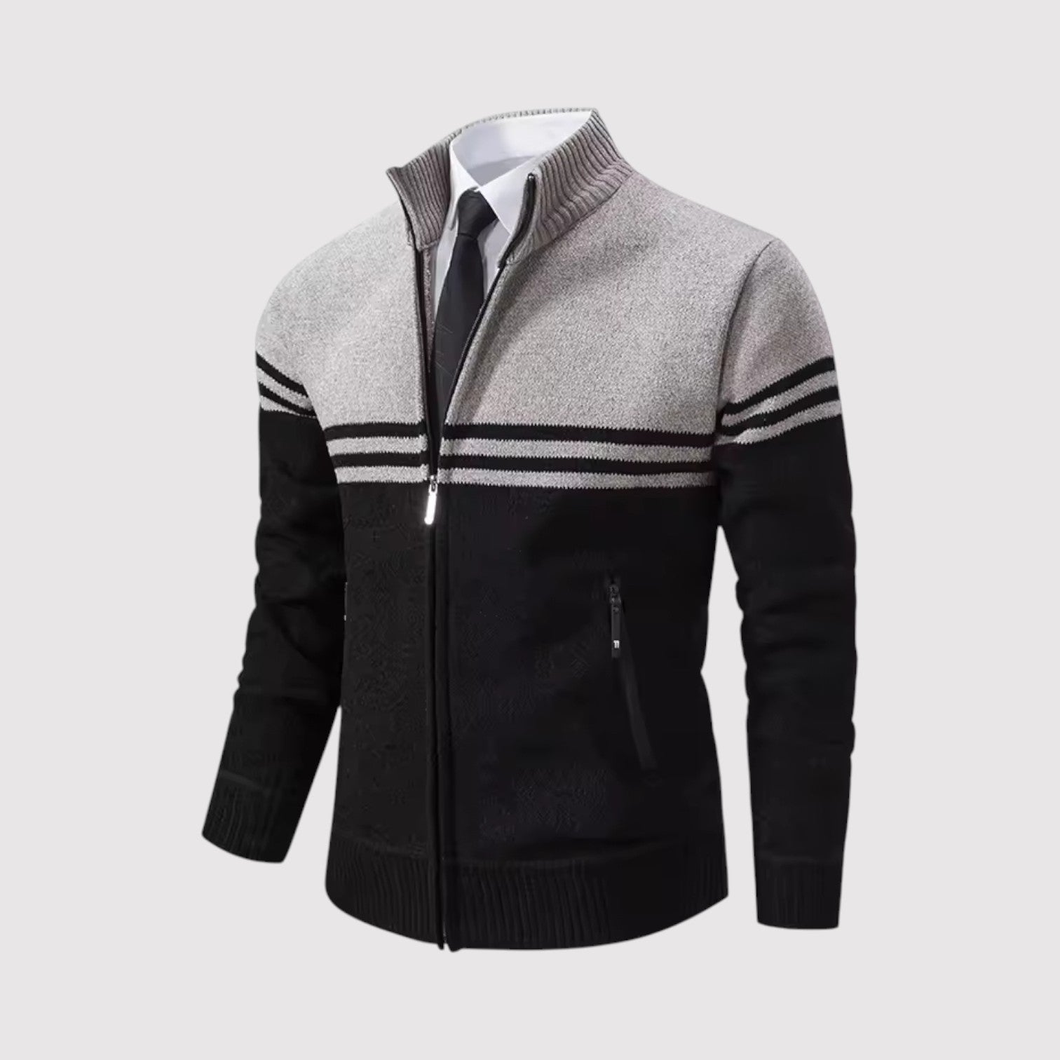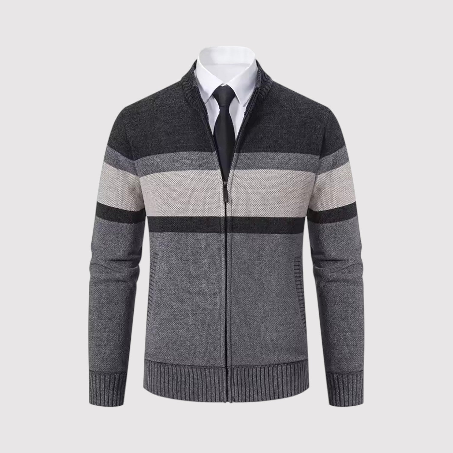 自信を引き出すスタイル – ストライプ柄とジップカラーが、クラシックな印象にモダンなアクセントをプラス。