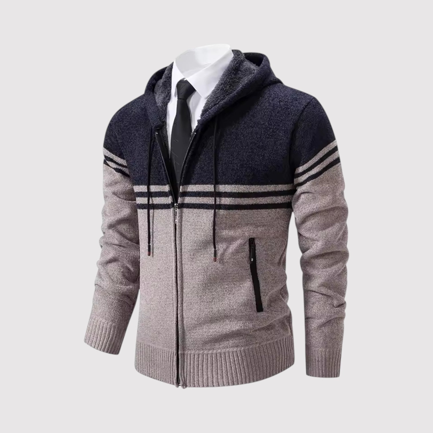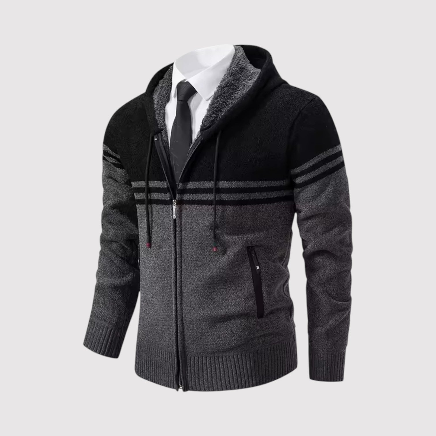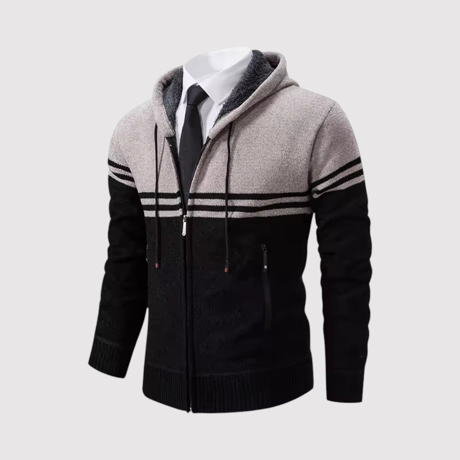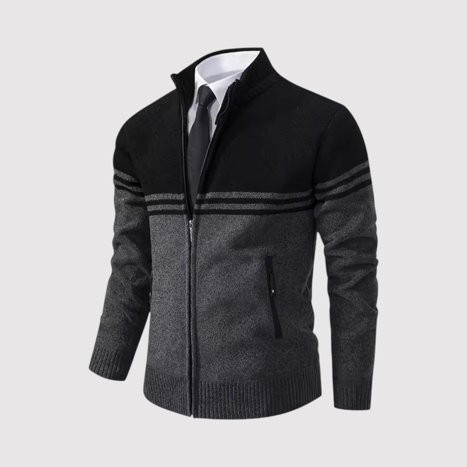 自信を引き出すスタイル – ストライプ柄とジップカラーが、クラシックな印象にモダンなアクセントをプラス。