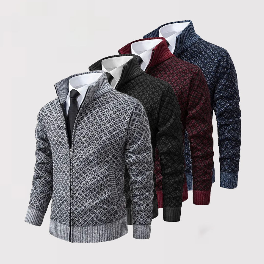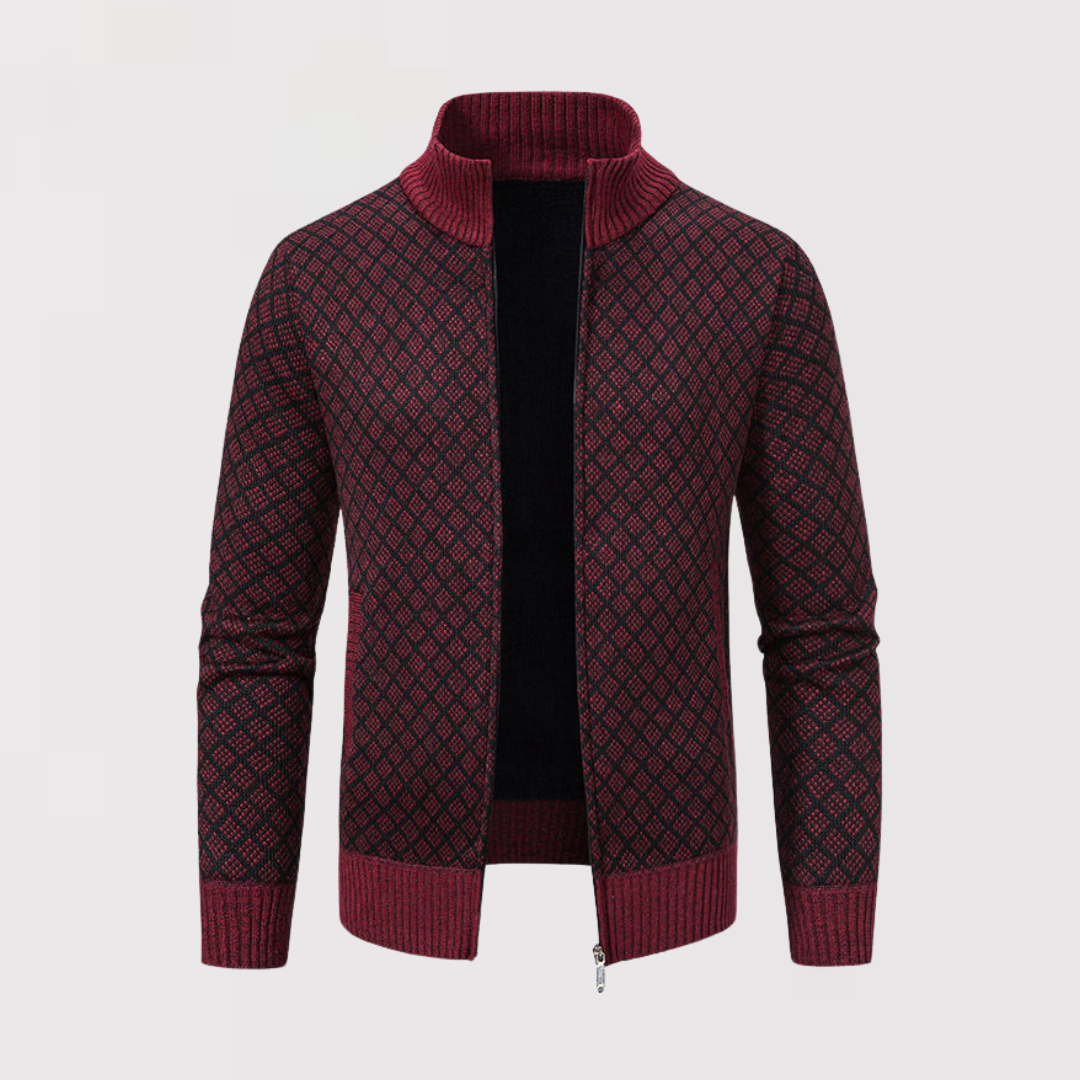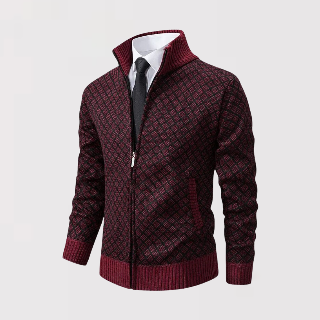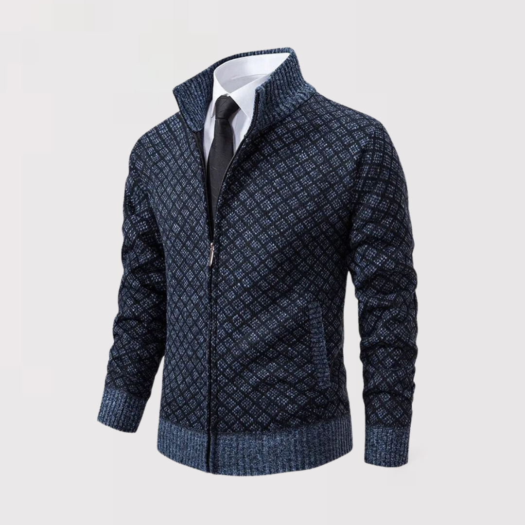 洗練と快適さを兼ね備えた、精巧に仕立てられたカーディガンを発見してください。繊細なダークグレーの幾何学模様が特徴のこのカーディガンは、エレガントなデイリースタイルを新たに定義します。