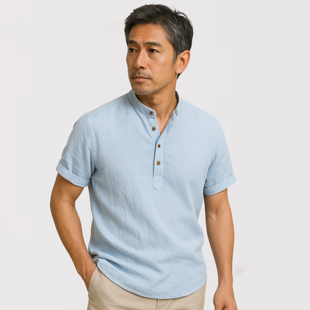 アレクサンダー リネンシャツは、自然な軽やかさと洗練されたスタイルを兼ね備えた一着。快適さとエレガンスを大切にする男性に最適です。上質なリネン素材を使用し、どんなシーンでも抜群の通気性と快適さを提供します。