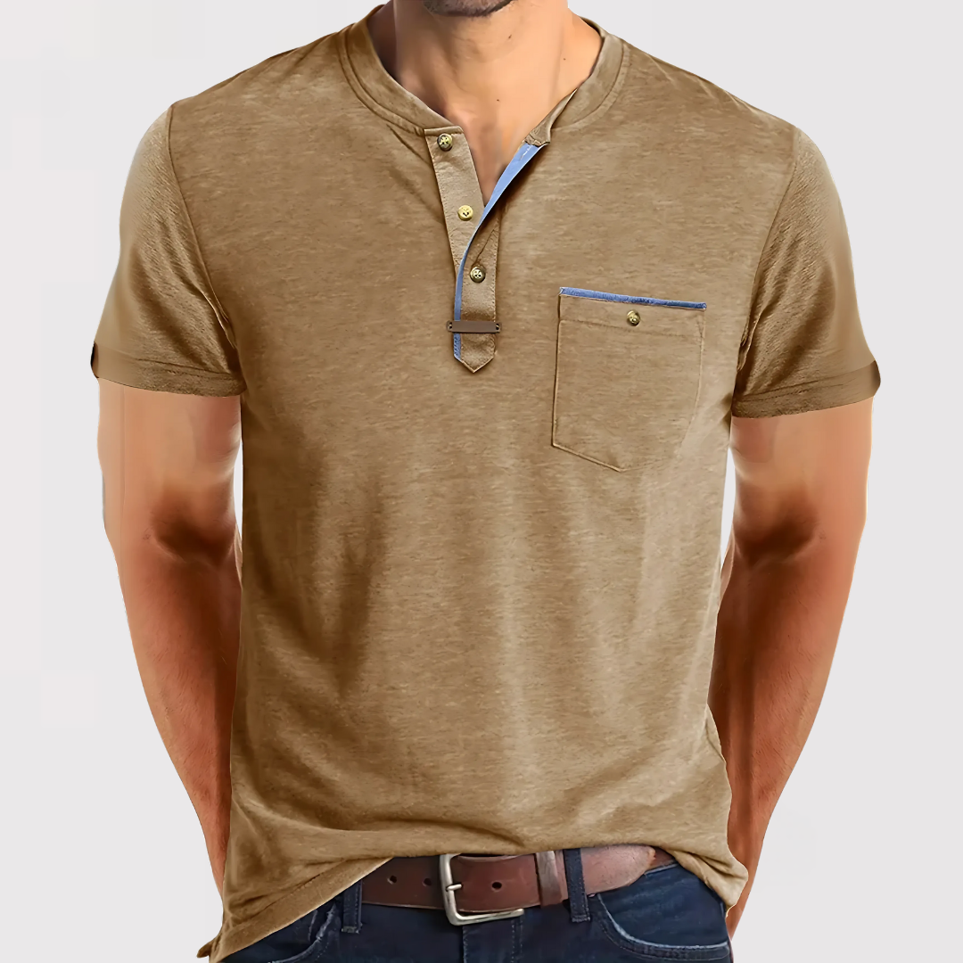 ディテール: 胸ポケット、柔らかな生地感、クラシックなネックライン