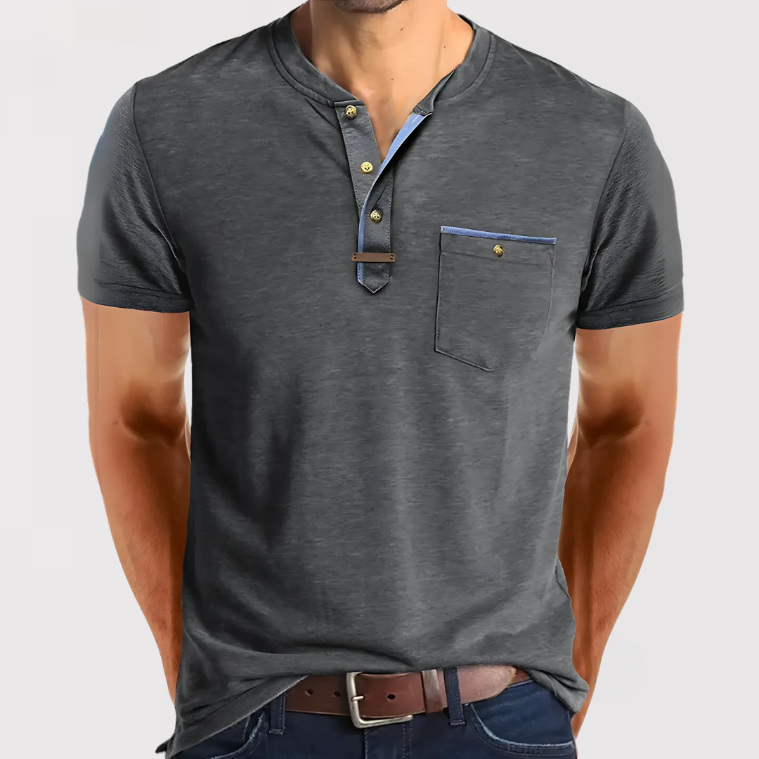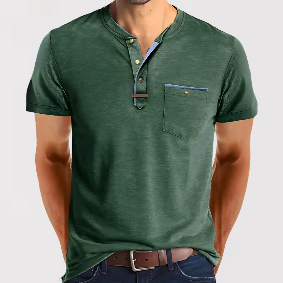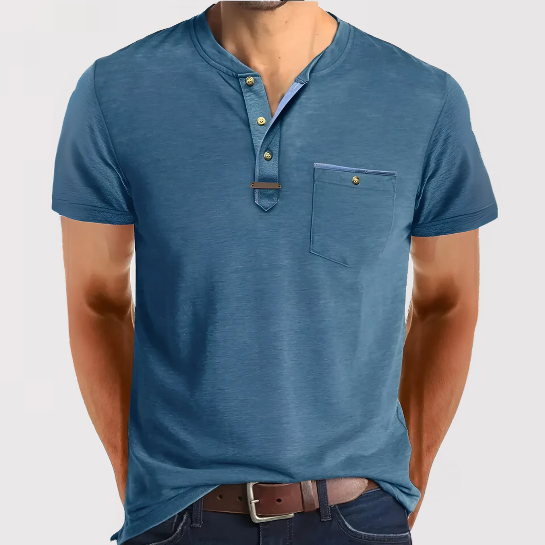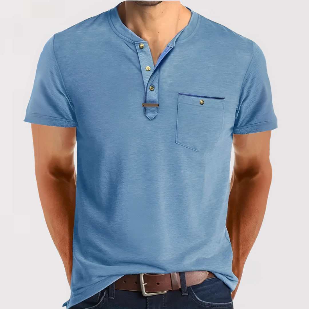 ミニマルなデザインに胸ポケットでさりげないアクセント。着心地も抜群で、日常から街歩きまで幅広く活躍する一枚です。