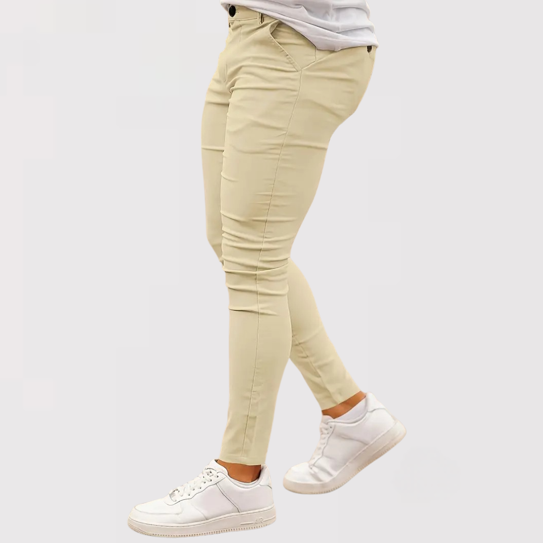 このカジュアルコミューターパンツは、アクティブな日々のために設計され、通勤や散歩中も動きやすく快適な履き心地を提供します。ミニマルなデザインでTシャツやシャツにも合わせやすく、仕事や日常使いに最適なコーディネートを作れます。