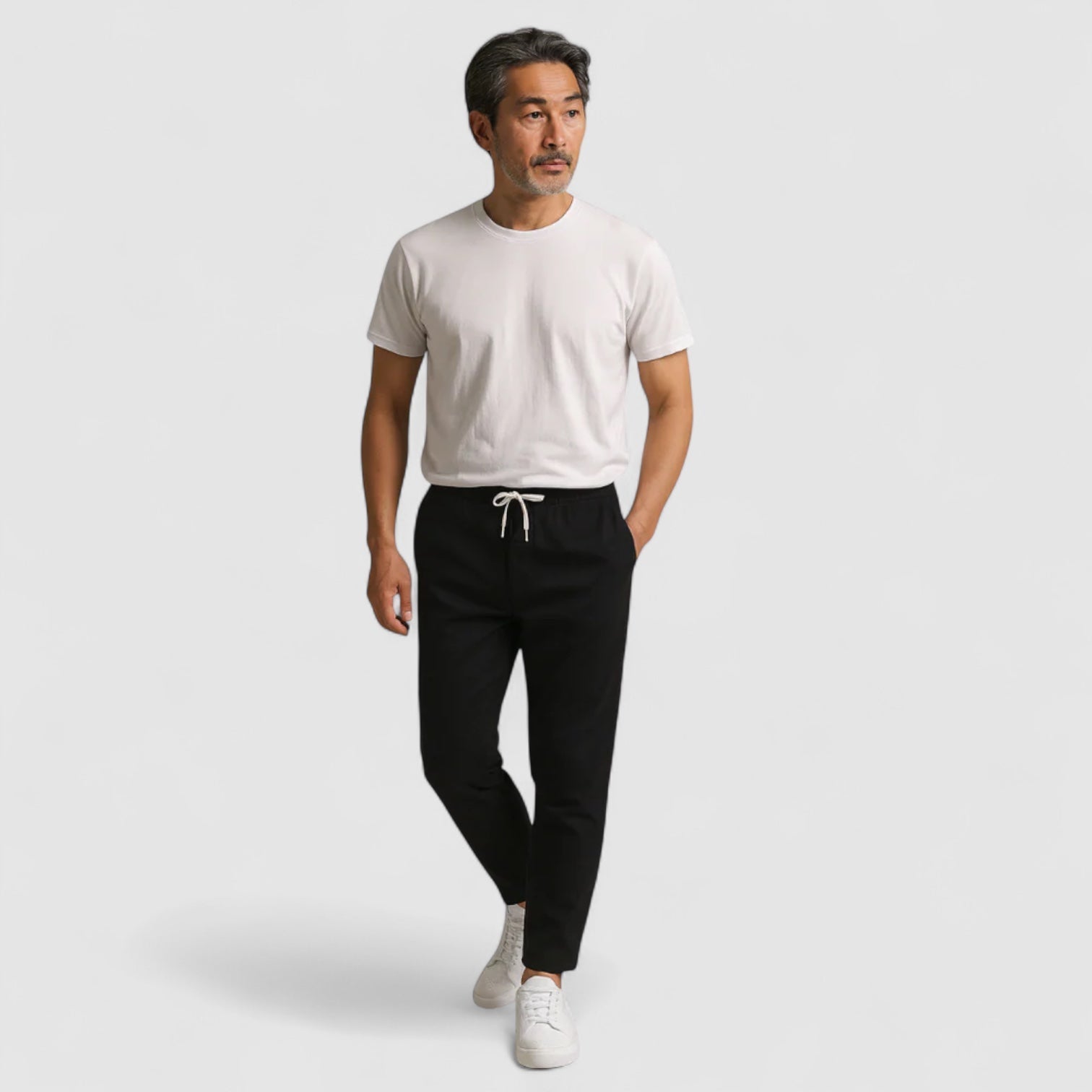 ご注意: 写真のようなスリムなシルエットをご希望の場合は、ワンサイズ下をお選びいただくことをおすすめします。通常サイズですと、ややゆったりとした印象になる場合がございます。ウエストは調節可能で、快適に着用いただけます。