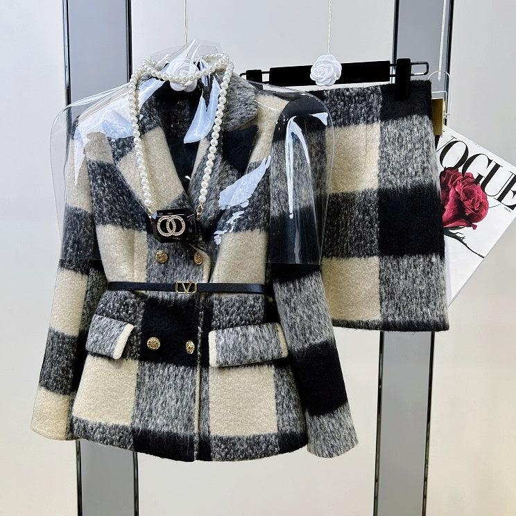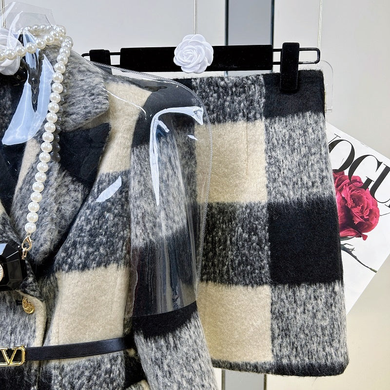 サイズジャケットS:着丈63cm バスト88cmM:着丈64cm バスト92cmL:着丈65cm バスト96cm XL:着丈66cm バスト100cmスカートS:ウエスト68cm 裾丈41cmM:ウエスト72cm 裾丈42cmL:ウエスト76cm 裾丈43cm XL:ウエスト80cm 裾丈44cm