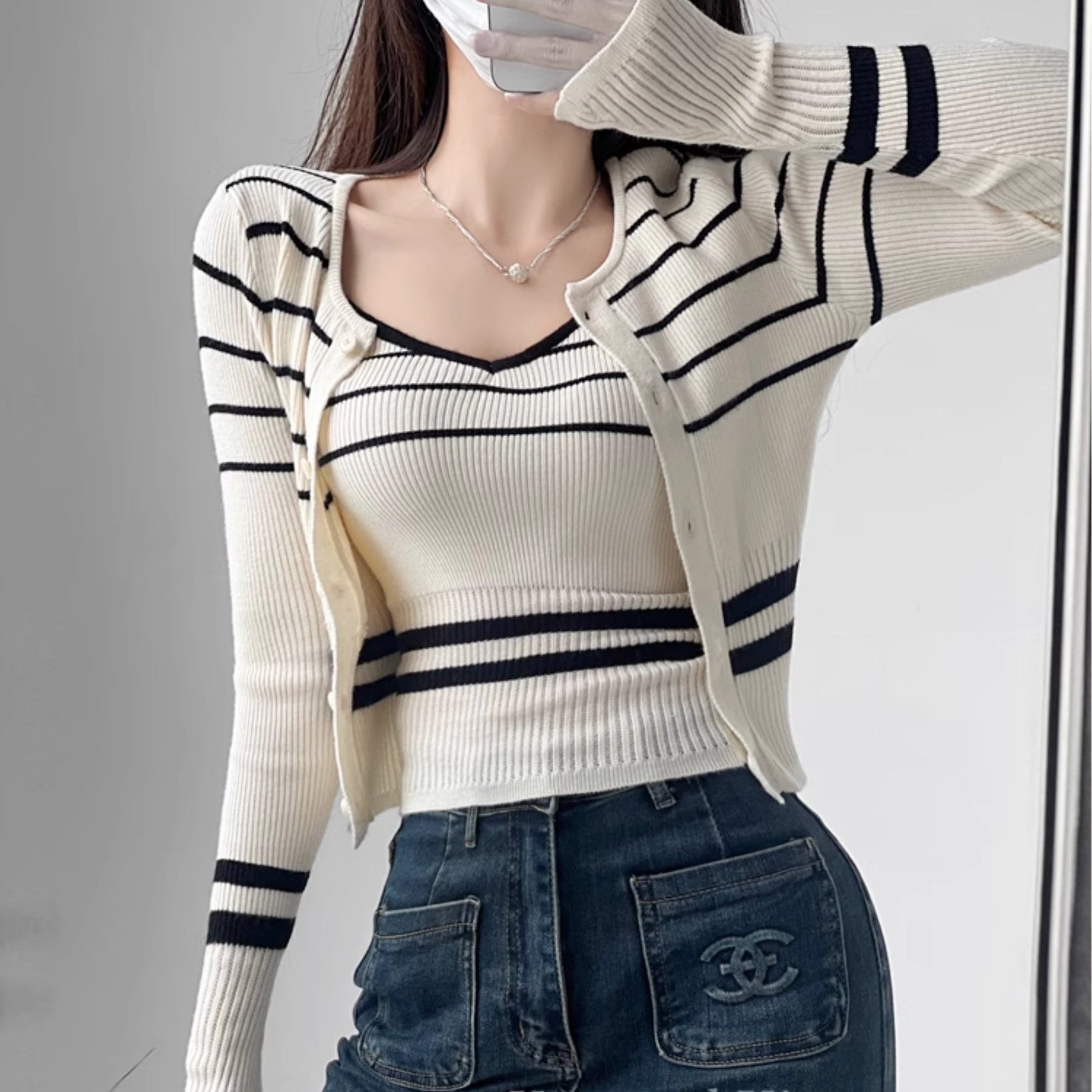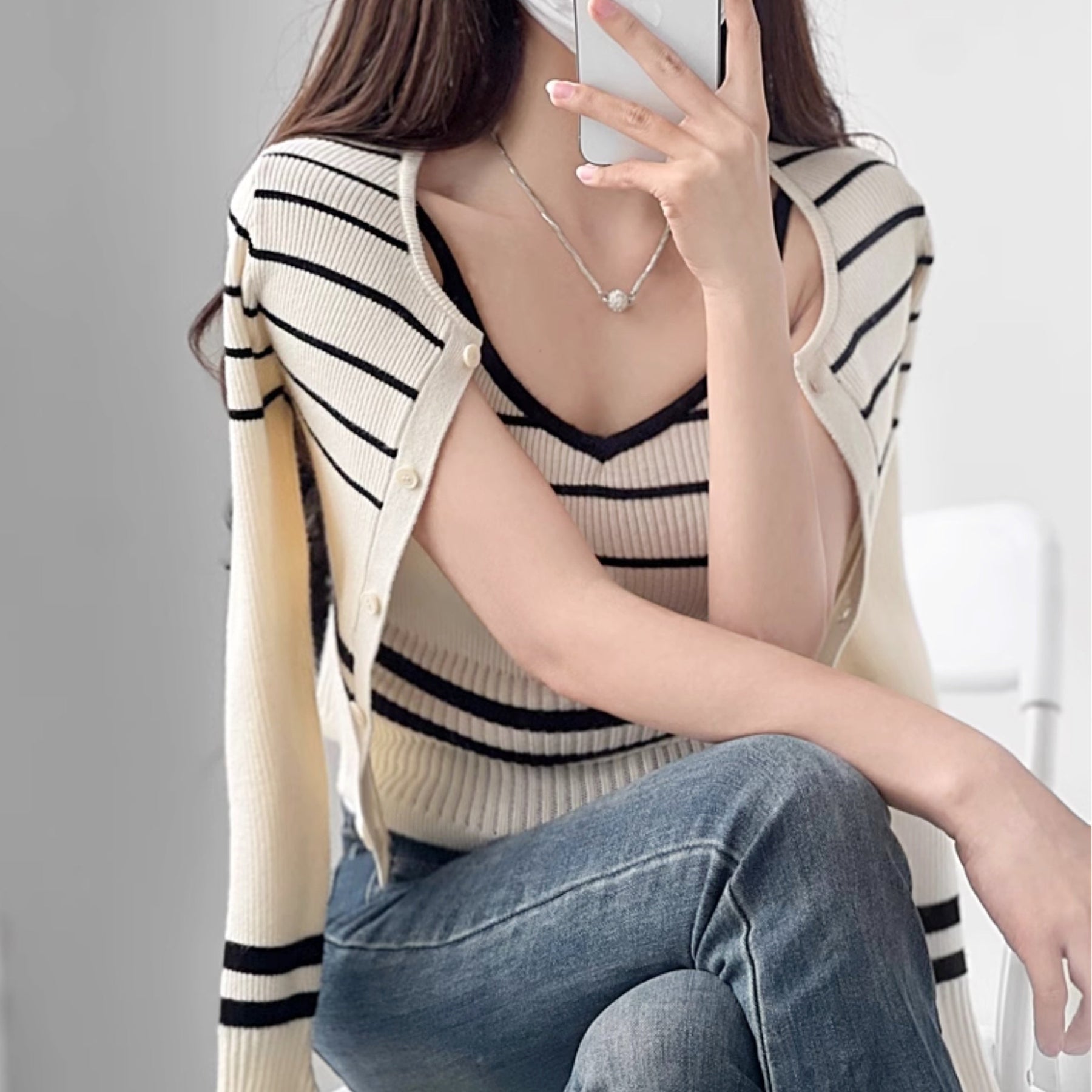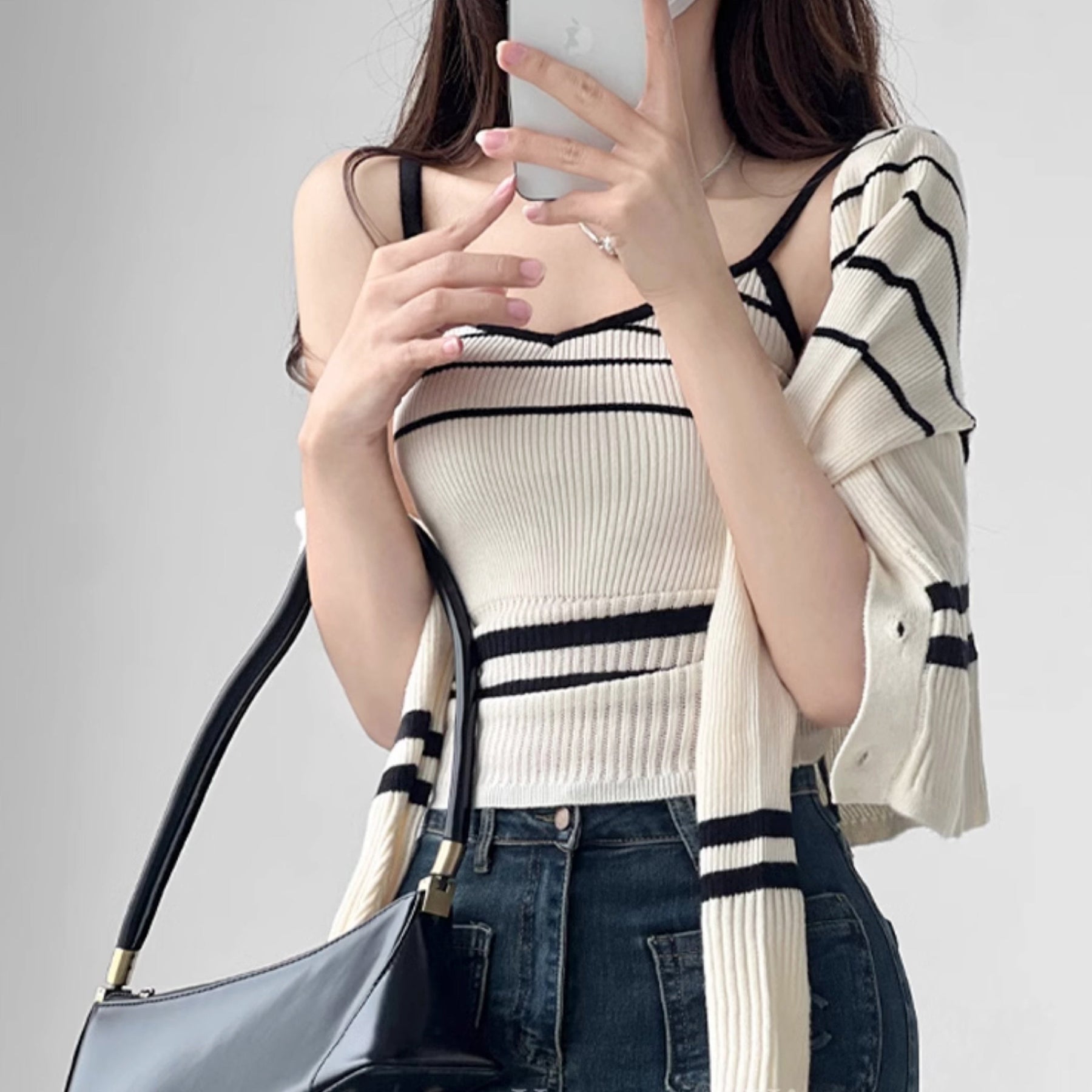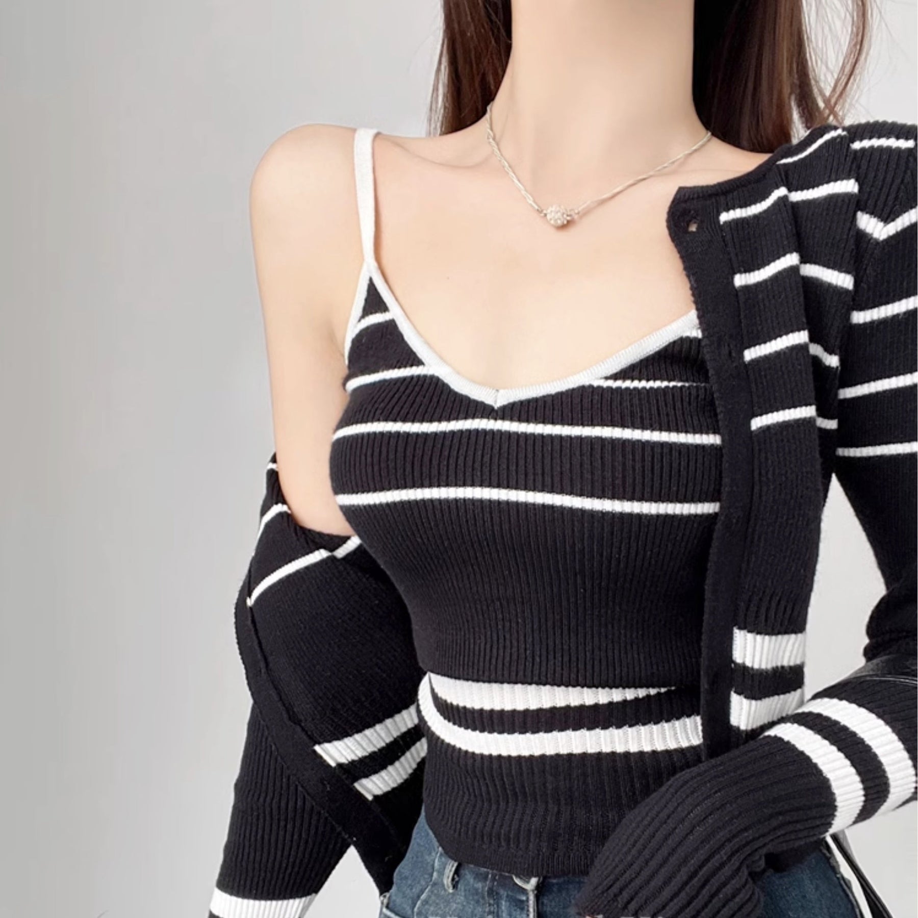 サイズキャミソール:着丈46cm バスト52-62cm カーディガン:着丈44m バスト62-82cm