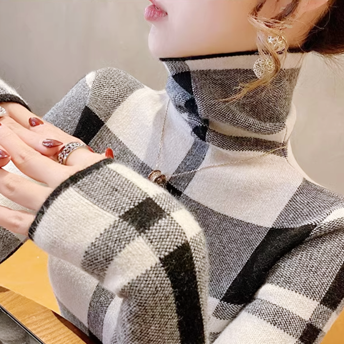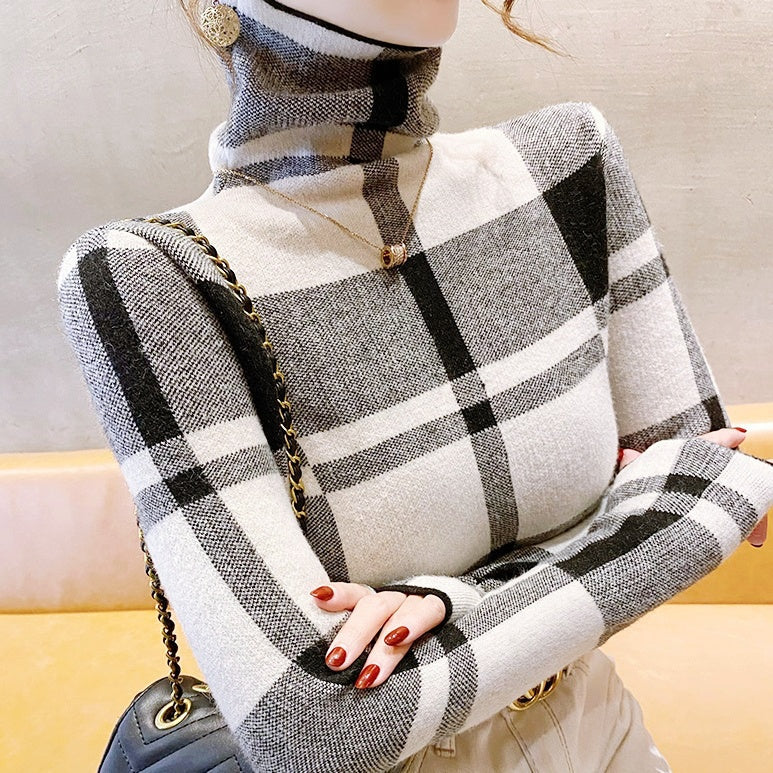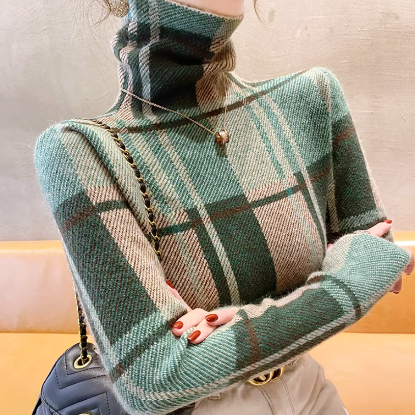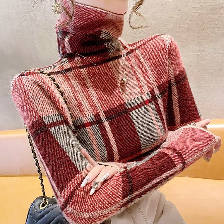 チェック柄タートルネックトップス