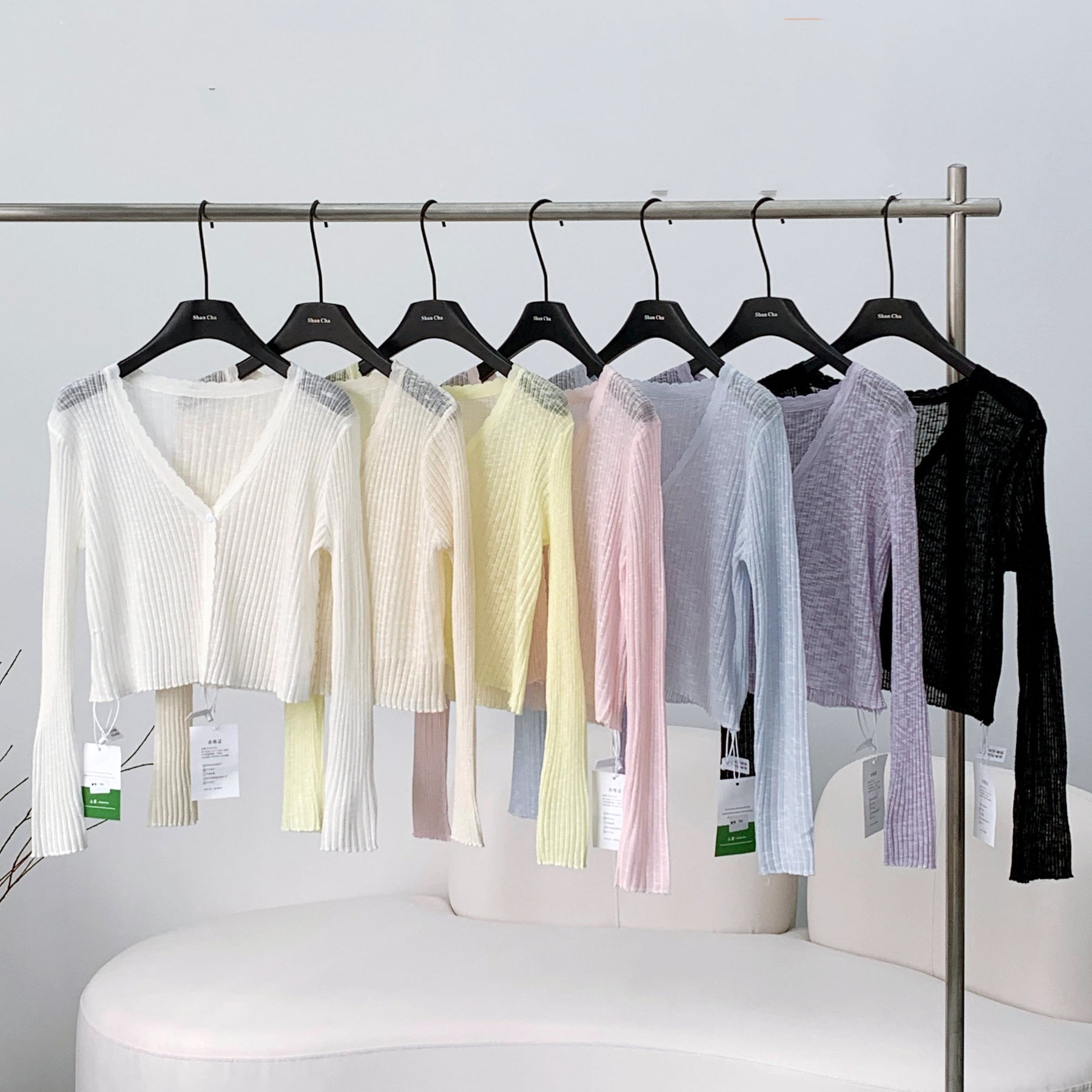 Vネックシースルースリムカーディガン