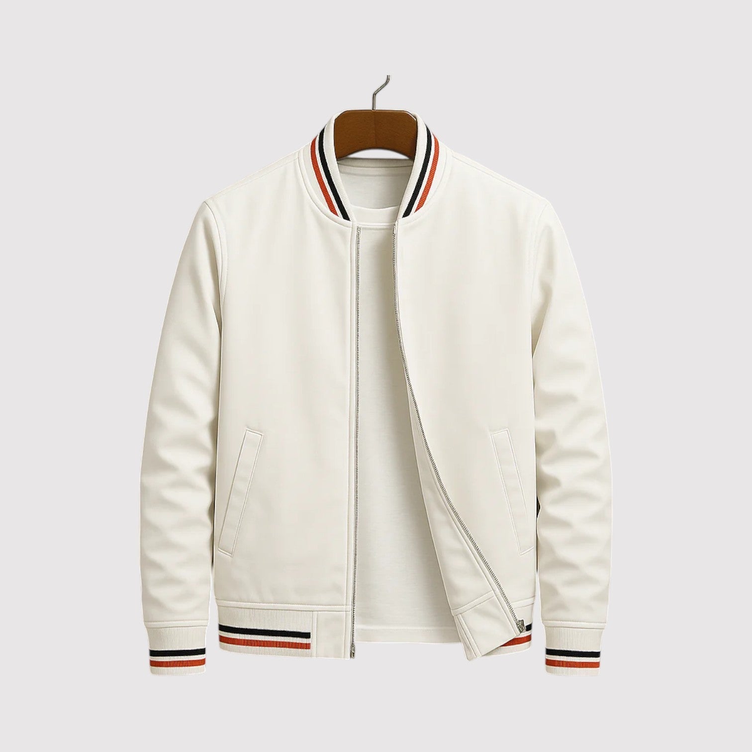 洗練された印象に – 襟や袖口のさりげないストライプのトリムが、上品なアクセントを添えます。